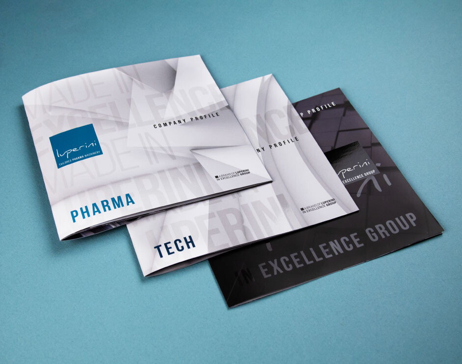 Descrizione: cataloghi di prodotto in punto metallico, company profile formato 3 ante e punto metallico